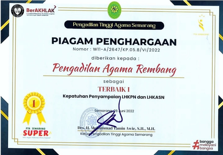 Pengadilan Agama Rembang | *Setiap laporan akan ditindaklanjuti maksimal 5 hari kerja
