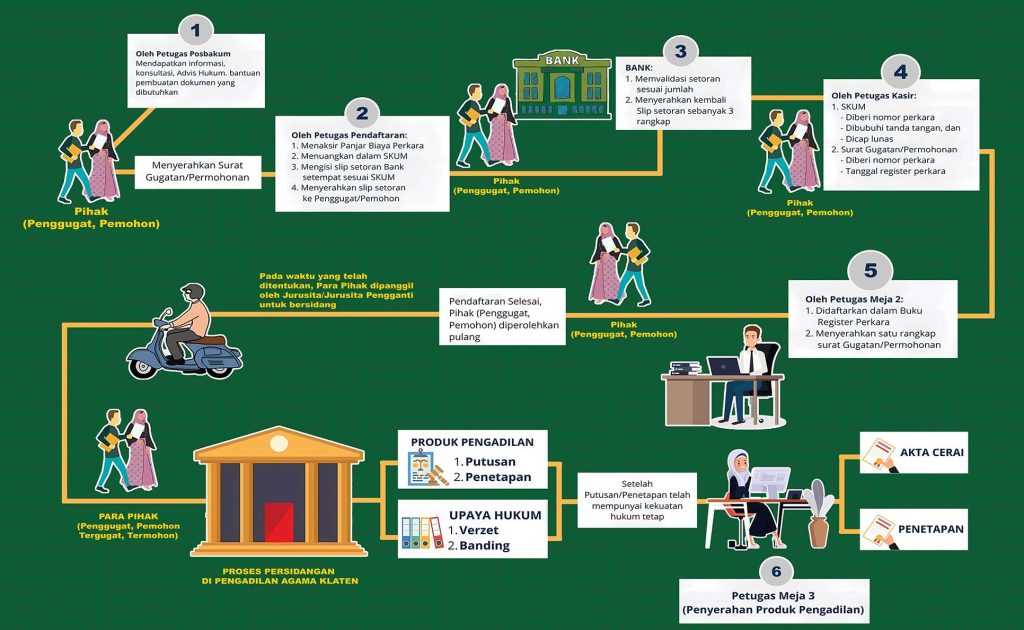 E-Court (Pendaftaran Perkara Online): Daftar perkara, pembayaran biaya panjar (e-Skum), hingga persidangan secara elektronik tanpa harus datang berulang kali ke kantor.