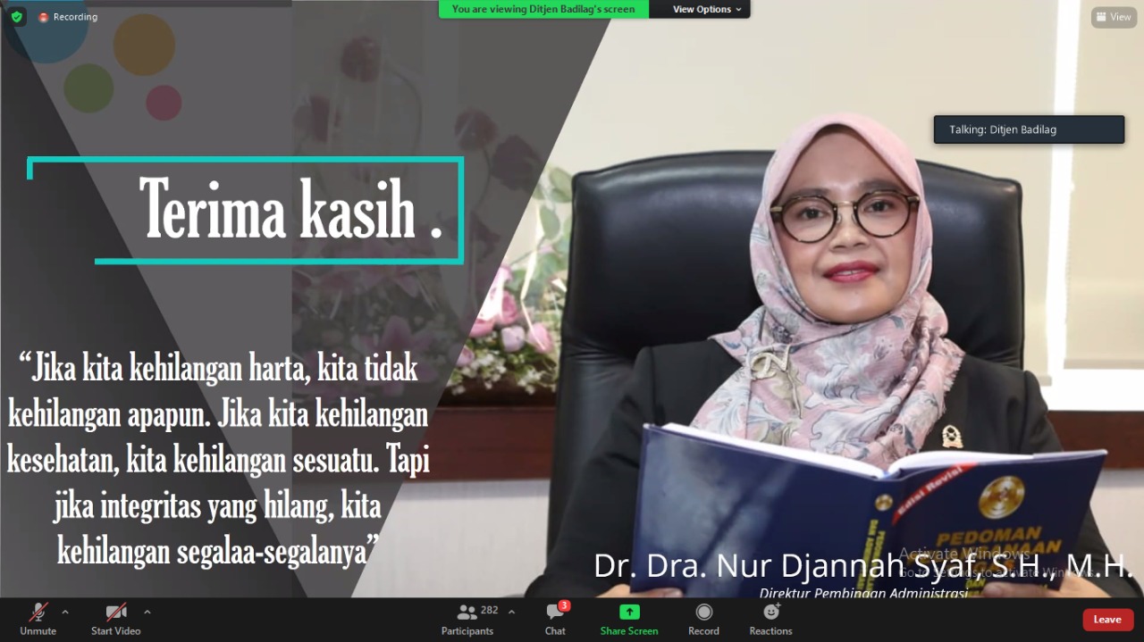 Rembang, 8 Desember 2021 Pukul 08.30 WIB bertempat di Media Center Pengadilan Agama Rembang Kelas I B, Wakil Ketua, Bapak Ikin, S.Ag. bersama Panitera Ibu Dra. Hj. Nur Aziroh, ME. Mengikuti acara Pembukaan Bimbingan Teknis Administrasi Peradilan oleh Ditjen Badilag Mahkamah Agung RI.