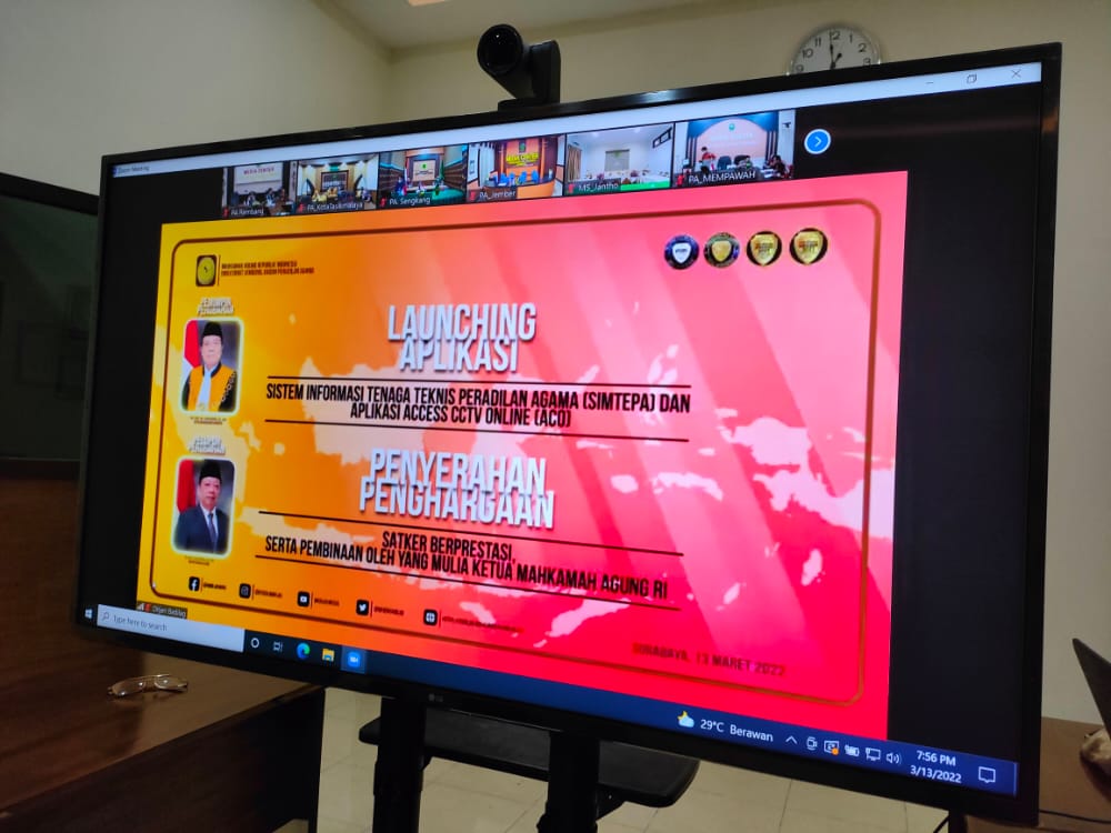 Rembang | Minggu (13/3/2022) seluruh aparatur Pengadilan Agama Rembang Kelas I B mengikuti pembukaan rapat koordinasi (Rakor), peluncuran aplikasi, pemberian penghargaan kepada Pengadilan berprestasi dan pembinaan Yang Mulia Ketua Mahkamah Agung RI yang dilaksanakan secara virtual melalui zoom meeting bertempat di Media Center. Acara tersebut berlangsung mulai pukul 19.00-selesai.