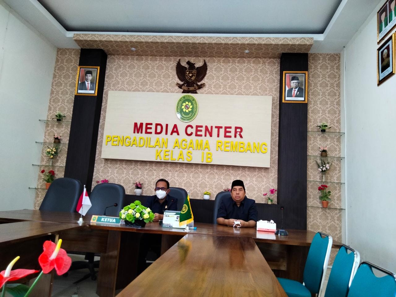 Rembang, 12 April 2022 Ketua dan Wakil Ketua Pengadilan Agama Rembang Kelas I B menghadiri dan menyaksikan Dialog antar Pengadilan Ditjen Badilag MA RI dan Family Court of Australia secara virtual. Bertempat di ruang Media Center Pengadilan Agama Rembang Kelas I B.