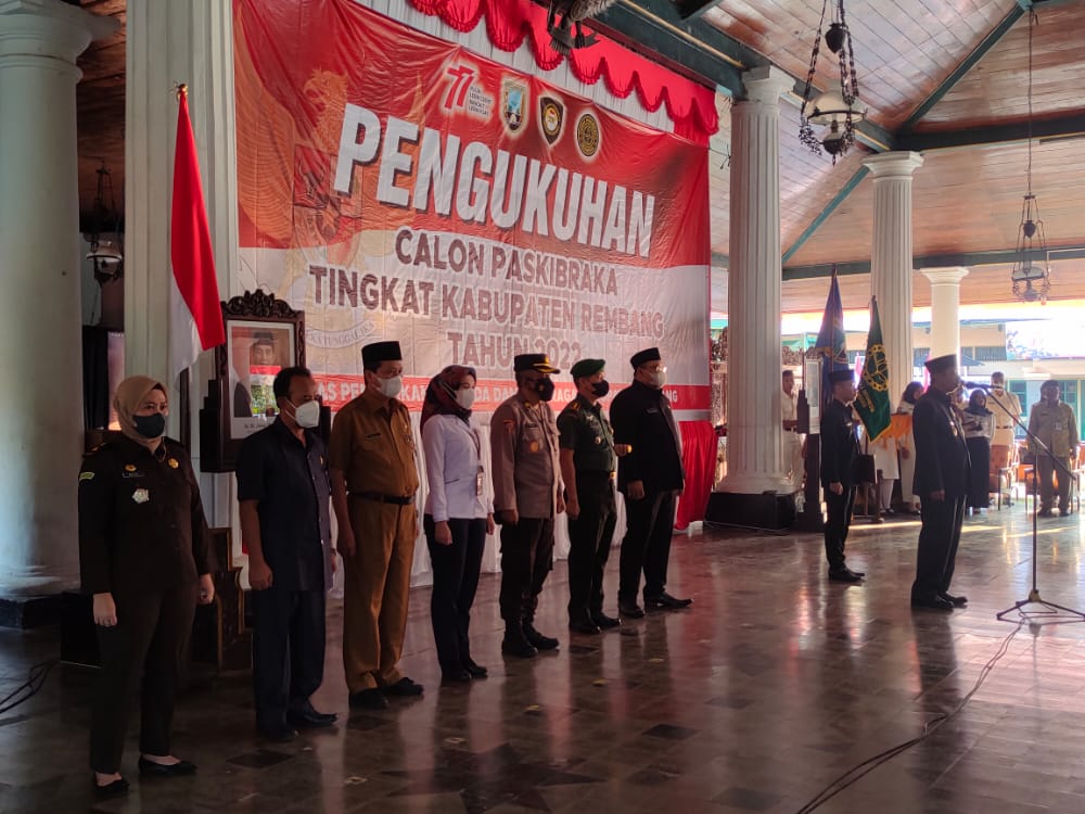 Rembang | Pada Hari Senin, 15 Agustus 2022 Pukul 16.00, Ketua Pengadilan Agama Rembang Drs. Zakiruddin menghadiri kegiatan Pengukuhan Calon PASKIBRAKA Tingkat Kabupaten Rembang Tahun 2022. Acara yang dilaksanakan di Pendopo Museum R.A Kartini Rembang ini dipimpin langsung oleh Bupati Rembang. Dalam acara ini hadir seluruh tim Paskibraka Kabupaten Rembang beserta dengan jajaran Forkopimda Kabupaten Rembang.