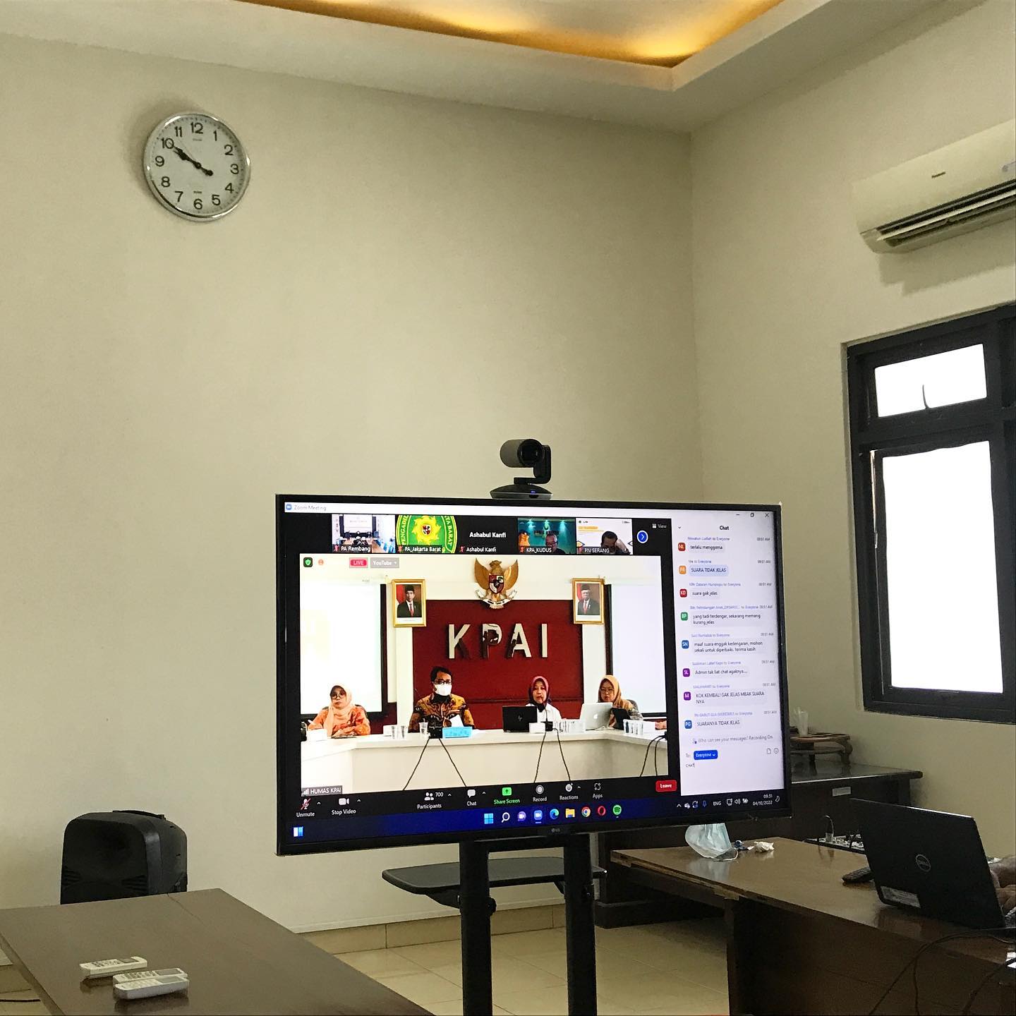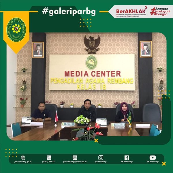 Rembang, 4 Oktober 2022 | Bertempat di Media Center PA Rembang, Ketua, Sekretaris, serta Kasubbag Kepegawaian dan Ortala PA Rembang menghadiri Sosialisasi Hasil Pengawasan Pemenuhan Hak Pengasuhan Anak pada Orang Tua Tunggal, Berkonflik, dan Bercerai oleh Komisi Perlindungan Anak Indonesia secara Virtual.