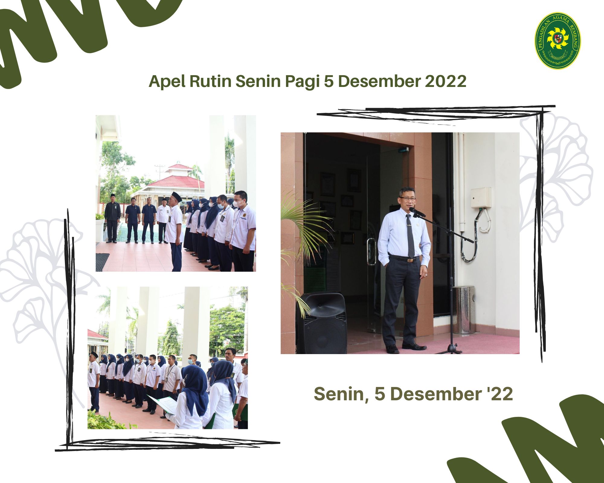 Rembang (05/12) | Berkesempatan pada apel pagi ini dikomandani oleh Moh. Zaenuri dan sebagai pembina apel yaitu YM Wakil Ketua Pengadilan Agama Rembang, Nadimin, S.Ag., M.H. Membuka sesi amanat, beliau mengajak seluruh aparatur untuk membaca surah Al Fatihah secara bersama-sama, dengan berharap semoga Allah SWT senantiasa membimbing kita sehingga pekerjaan yang dilakukan dapat menjadi nilai ibadah. Beliau menyampaikan di awal bulan sekaligus di penghujung tahun 2022 ini, semoga pekerjaan yang direncanakan di awal tahun dan yang perlu diselesaikan dapat segera tuntas selesai. Tidak lupa beliau tekankan untuk senantiasa menjaga kekompakan dalam menyelesaikan pekerjaan yang ada.