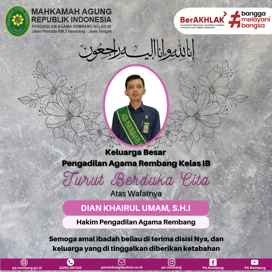 telah meninggal dunia Bapak Dian Khairul Umam, S.H.I (Hakim Pengadilan Agama Rembang) ,