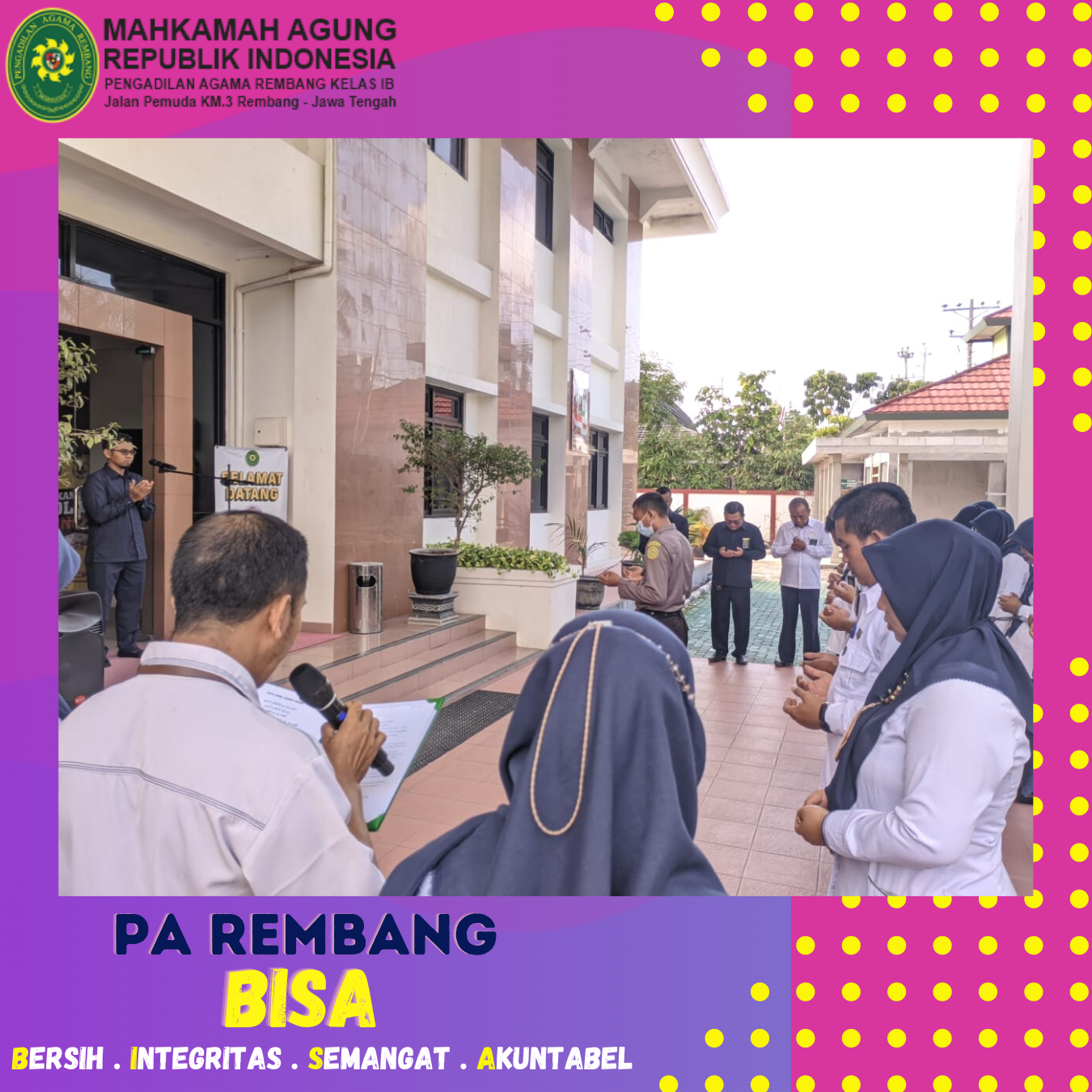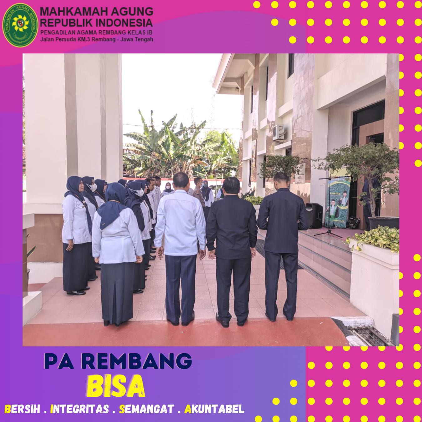 Senin (13/03) – Pengadilan Agama Rembang laksanakan apel rutin Senin Pagi yang bertempat di halaman kantor PA Rembang. Berkesempatan pada apel pagi hari ini dengan Pembina yaitu Hakim PA Rembang, Bapak Gunawan, S.H.I