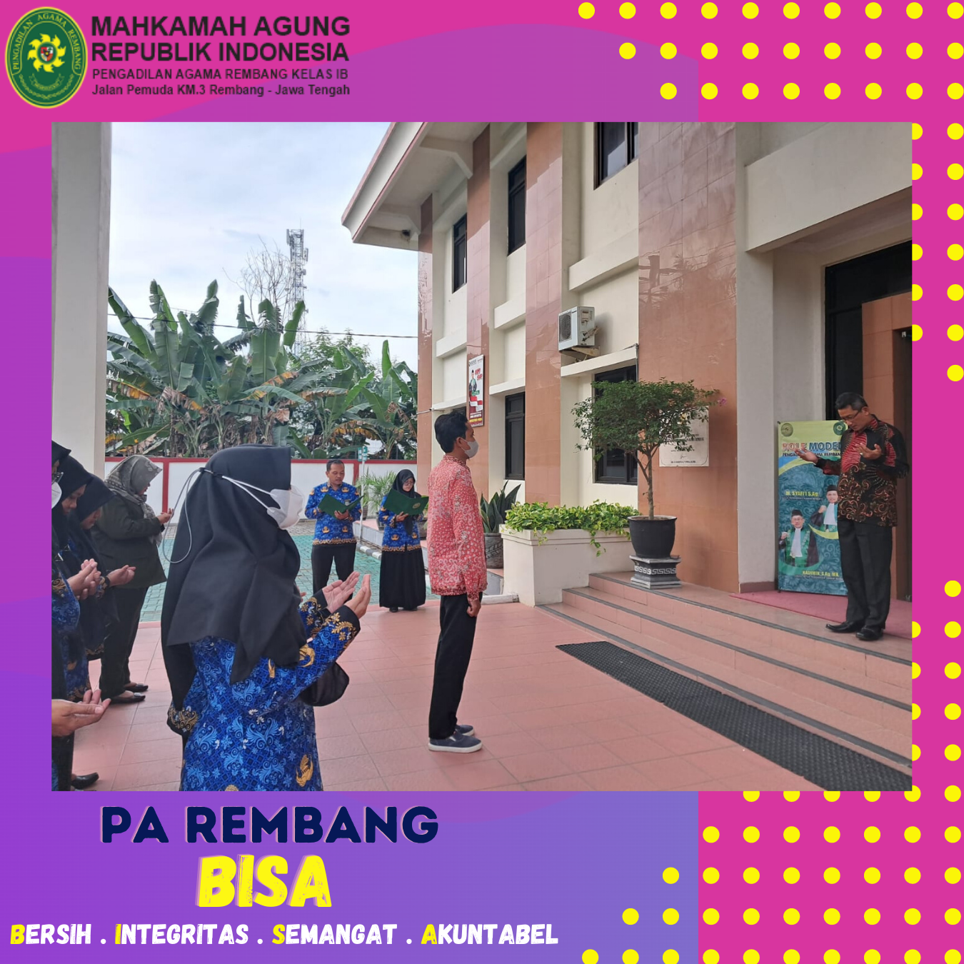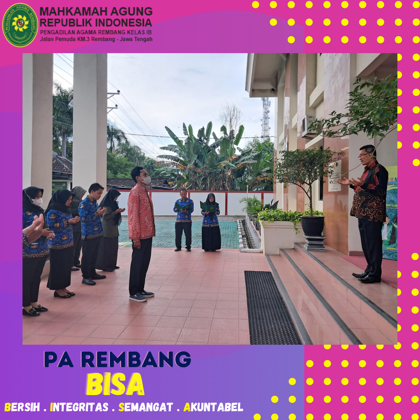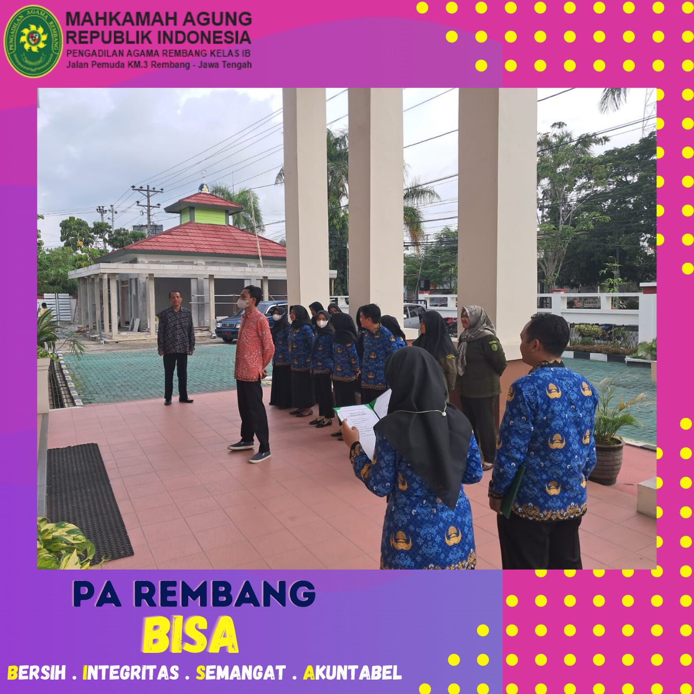 Jum’at (17/03) – Pengadilan Agama Rembang laksanakan apel rutin Jum’at Sore yang bertempat di halaman kantor PA Rembang. Berkesempatan pada apel sore ini dengan Pembina yaitu Wakil Ketua PA Rembang, Bapak Nadimin, S.Ag.,M.H.