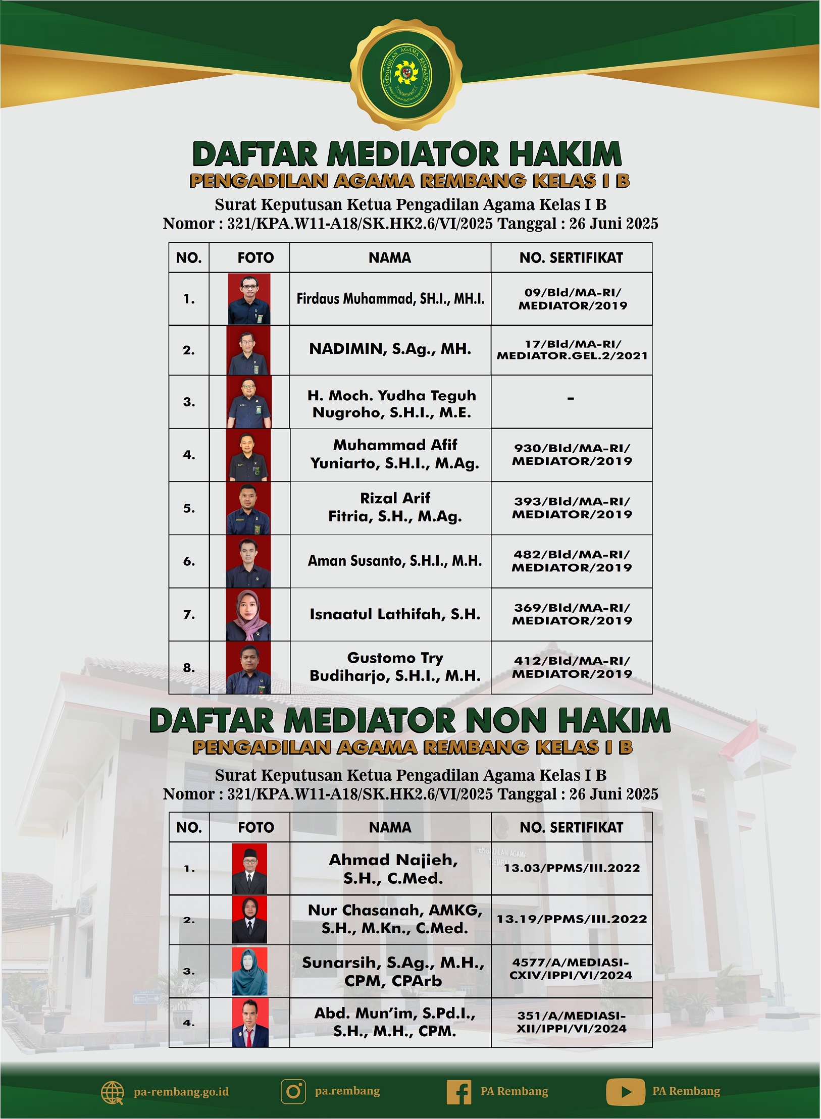 Daftar Nama dan Foto Mediator