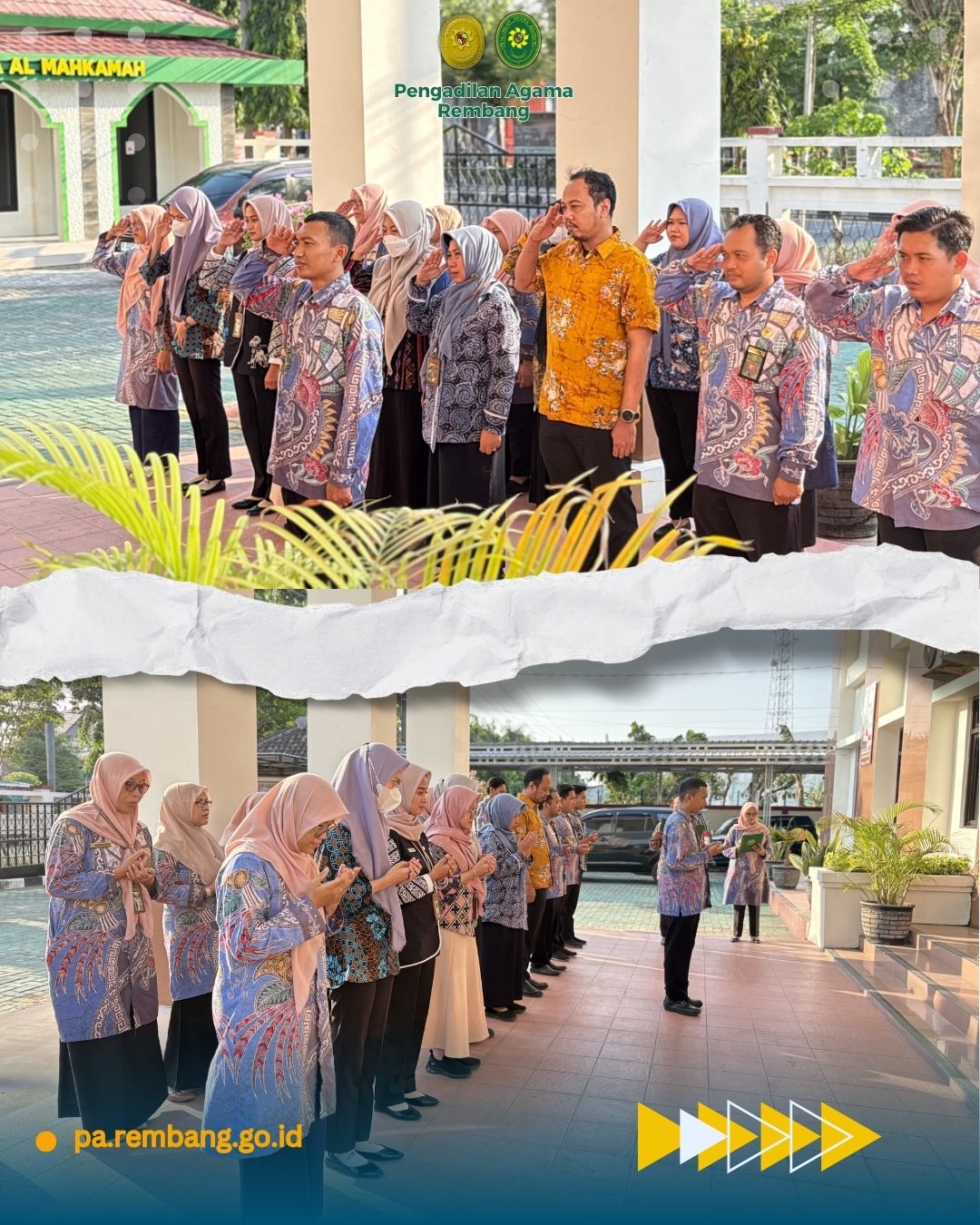 Rembang, 10 Oktober 2025 – Seluruh aparatur Pengadilan Agama (PA) Rembang melaksanakan apel sore rutin di halaman kantor pada Jumat (10/10).