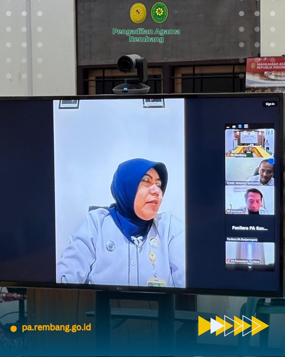Kegiatan yang dipandu oleh Panitera Muda Banding PTA Semarang, Tohir, S.H., M.H., ini berlangsung secara daring melalui Zoom Meeting dan diikuti dari Ruang Media Center PA Rembang.