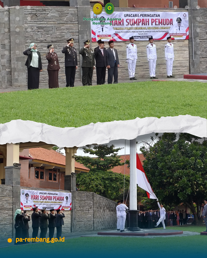 Panitera Pengadilan Agama Rembang, mewakili Ketua Pengadilan Agama Rembang, bersama Forum Koordinasi Pimpinan Daerah (Forkopimda) Kabupaten Rembang, mengikuti Upacara Peringatan Hari Sumpah Pemuda yang diselenggarakan di halaman Kantor Bupati Rembang.