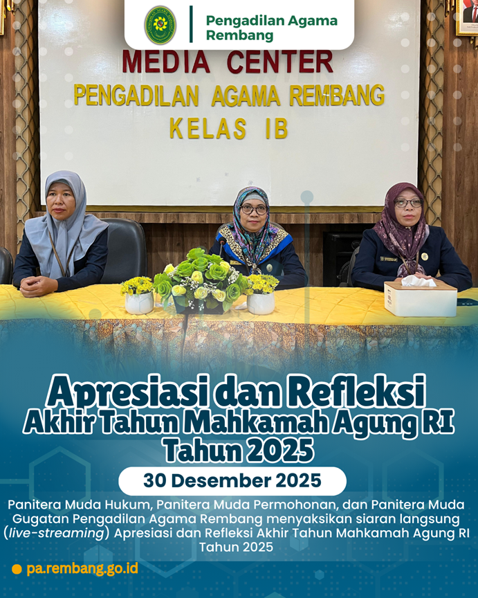 REMBANG – Jajaran kepaniteraan Pengadilan Agama (PA) Rembang turut serta menyemarakkan agenda nasional Mahkamah Agung Republik Indonesia dalam acara bertajuk "Apresiasi dan Refleksi Akhir Tahun Mahkamah Agung RI Tahun 2025". Kegiatan ini diikuti secara daring melalui kanal YouTube resmi Mahkamah Agung pada Selasa (30/12).