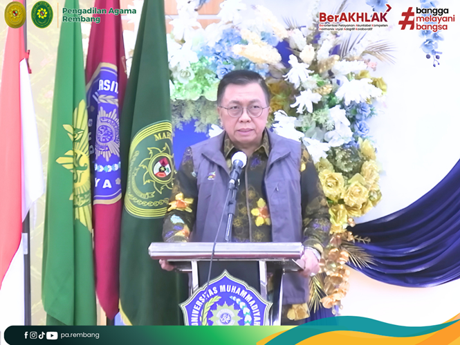 Surabaya – Ketua Pengadilan Agama (PA) Rembang, Bapak Firdaus Muhammad, S.H.I., M.H.I., menghadiri agenda penting berskala internasional bertajuk "Ketahanan Peradilan Agama di Era Disrupsi". Acara yang diselenggarakan secara hybrid dari Aula Tauhid Universitas Muhammadiyah Surabaya pada Jumat (23/01) ini, menjadi momentum krusial bagi jajaran pimpinan peradilan untuk menyelaraskan visi dengan standar hukum global.