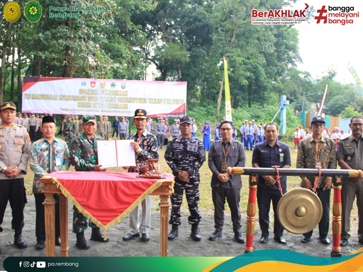 REMBANG – Komitmen untuk mendukung pembangunan daerah dan mempererat tali silaturahmi antarinstansi di Kabupaten Rembang terus ditunjukkan oleh Pengadilan Agama (PA) Rembang. Pada Selasa (10/02/2026), Ketua PA Rembang yang diwakili oleh Kasubbag Kepegawaian dan Organisasi dan Tata Laksana, Suharjo, S.H.I, M.H., menghadiri Upacara Pembukaan TMMD Sengkuyung Tahap I Tahun Anggaran 2026. Acara yang berlangsung khidmat di Lapangan Upacara Parking Area Wana Wisata Mantingan, Kecamatan Bulu ini, dimulai tepat pukul 09.00 WIB. Kehadiran Suharjo, S.H.I, M.H. di tengah unsur Forkopimda dan pimpinan dinas instansi terkait lainnya menjadi bentuk nyata dukungan PA Rembang terhadap program kemanunggalan TNI dengan rakyat.