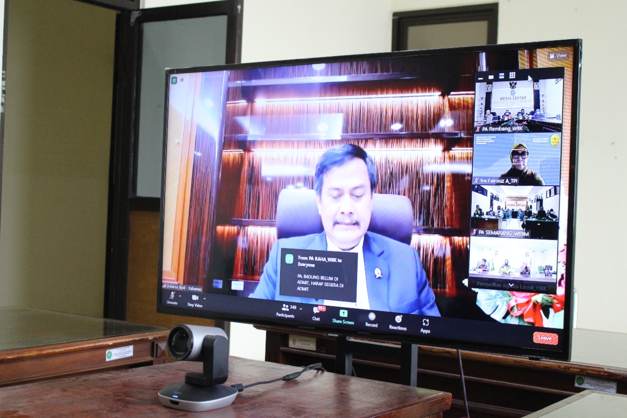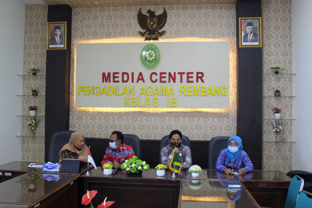 Kamis 11 November 2021 bertempat di Ruang Media Center Pengadilan Agama Rembang Kelas IB. Ketua, Wakil Ketua, Panitera dan Sekretaris mengikuti Zoom Meeting dengan Badan Pengawaas Mahkamah Agung RI, dalam rangka Sosialisasi Evaluasi Zona Integritas (ZI) menuju Wilayah Bebas Korupsi (WBK) dan Wilayah Birokrasi Bersih Melayani (WBBM) Tahun 2021.