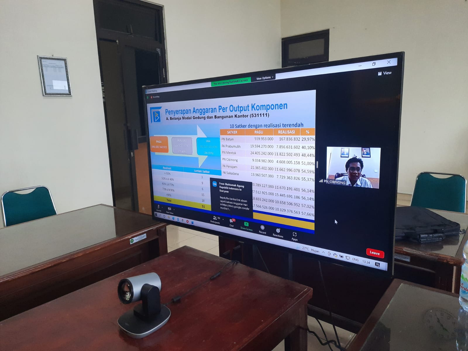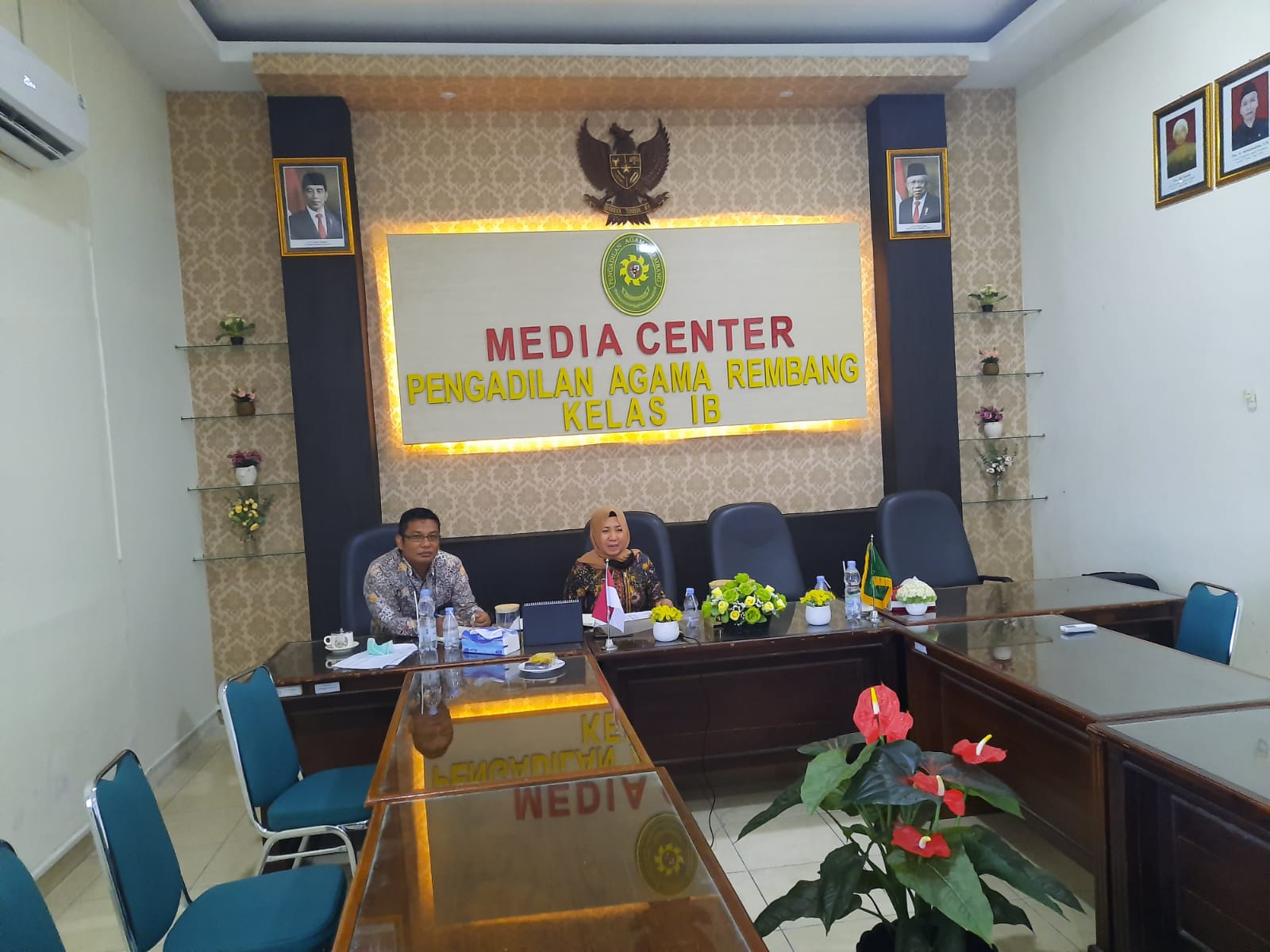 Kamis 11 November 2021 bertempat di Ruang Media Center Pengadilan Agama Rembang Kelas IB. Sekretaris PA Rembang Siti Nor Safa'atun, S.Th.I., dan Pejabat Pembuat Komitmen Kamarudin, S.H.I., mengikuti Zoom Meeting bersama dengan Sekretaris Mahkamah Agung RI Dr. H. Hasbi, M.H., dalam rangka mewujudkan belanja negara yang berkualitas, efisien dan efektif dalam rapat Evaluasi Pelaksanaan Anggaran TA 2021.