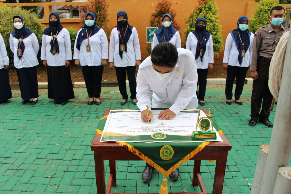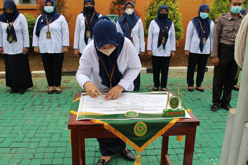 Rembang | Senin, 03 Januari 2021. bertempat dihalaman Kantor Pengadilan Agama Rembang. Pimpinan, Hakim dan seluruh Pegawai Pengadilan Agama Rembang mengucapkan dan menandatangani Maklumat Pelayanan, sebagai bentuk komitmen nyata atas pelayanan kepada masyarakat.