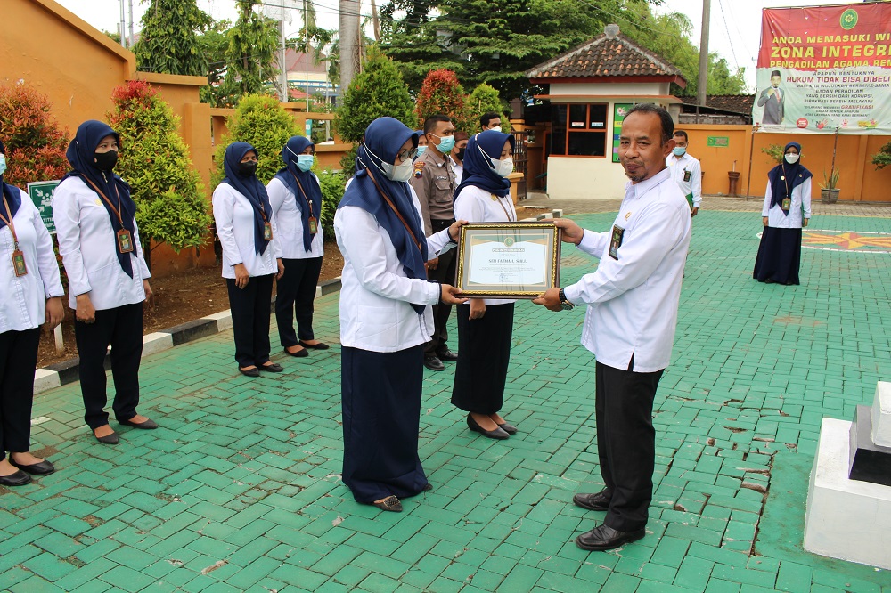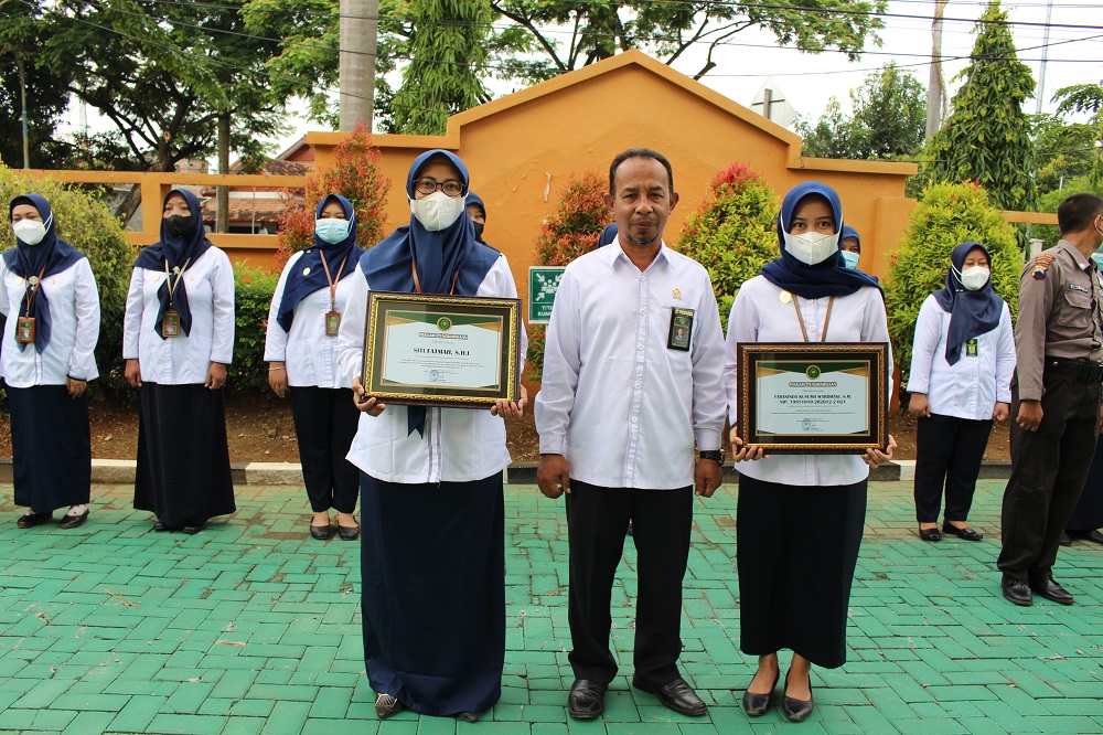 Rembang | Senin, 03 Januari 2021. bertempat dihalaman Kantor Pengadilan Agama Rembang. Pada saat apel senin pagi, Ketua Pengadilan Agama Rembang Drs. Zakiruddin memberikan penghargaan kepada Pegawai dan PPNPN yang berprestasi pada tahun 2021. Faraninda Kusuma Wardhani, S.M. dan Siti Fatmah, S.H.I .
