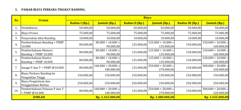 SK Panjar Biaya Perkara & Radius