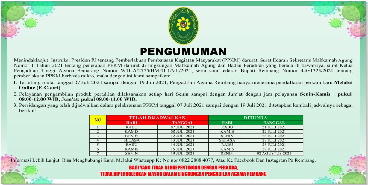 Penundaan Sidang dimasa PPKM 2021